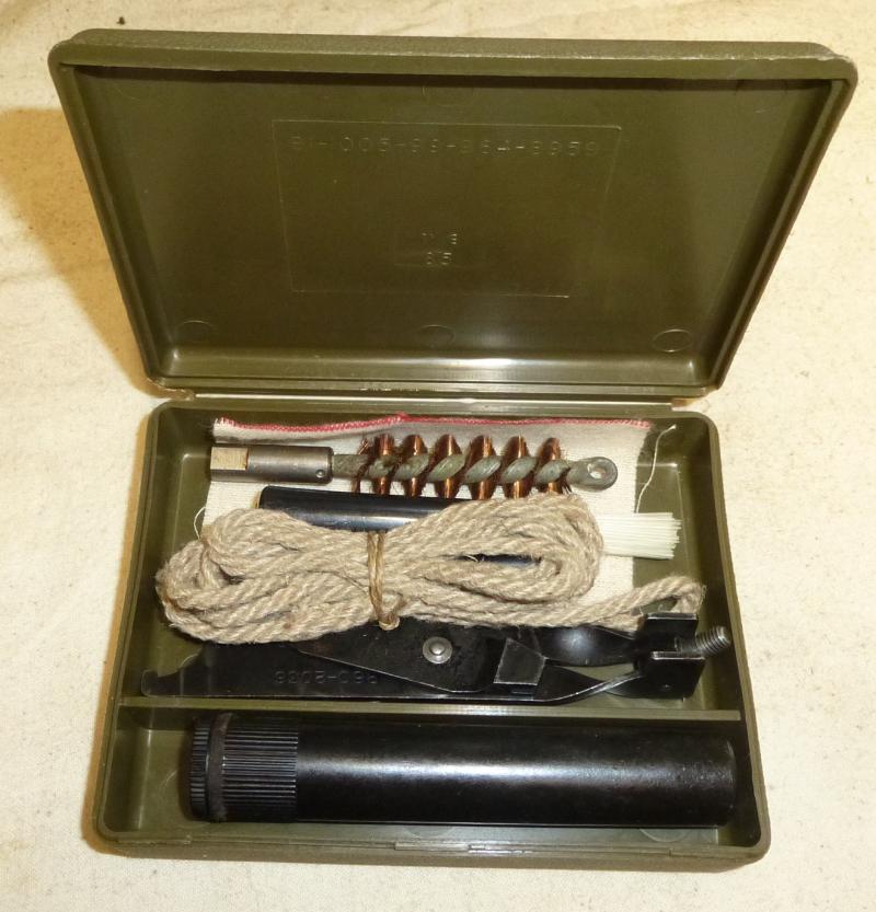 Genuine British issue SLR cleaning kit in 1998 dated plastic cleaning kit box. In as new condition with only storage marks. Contents: pull through, chamber brush,nylon brush, oiler, combination tool, 2x4 cloth