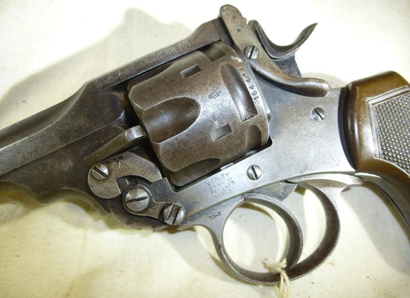 This is a very fine example of a WWI Webley MkVI service revolver. It has a lovely even worn patina with matching numbers. It looks like a genuine bring back revolver that has stayed all original. It breaks open with clear cylinders. Please contact me prior to order as bank transfer please no paypal and shipping to be discussed. Also proof of age to be shown