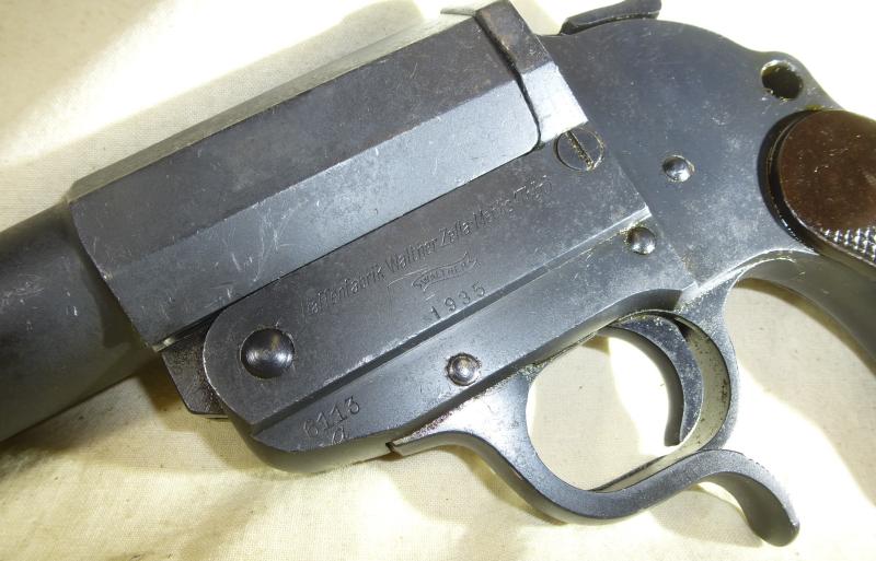 This is a lovely condition Walther Luftwaffe marked flare gun. This is a early model dated 1935 and made from heavy steel prior to the lighter and cheaper to produce alloy models. A nice clean example that fits into the Battle of Britian period of possible use and issue. Deactived. Please contact me prior to purchase for proof of age and to arrange delivery etc. Bank transfer preferred payment. Any questions please ask.