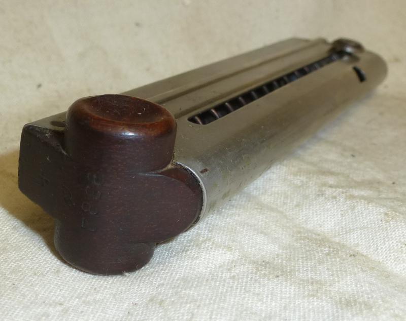 This is a genuine WWI Luger magazine with wood base marked 9382 With a nice tight spring in good overall condition as expected for its age