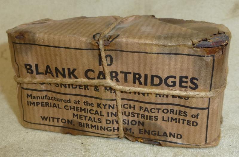 This is a rare find 10 original blank cartridges for the Snider & Martini Rifle. As seen in pictures complete in original unopened wrapping. Little corrosion seem on some of the base. A unique item for the collector