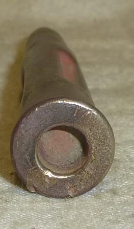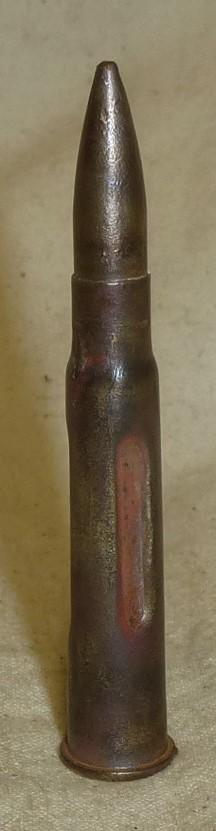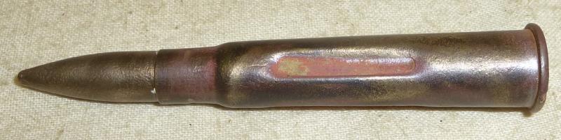 This is a fully inert drill/training round, the case is complete with the three large red painted indentations.