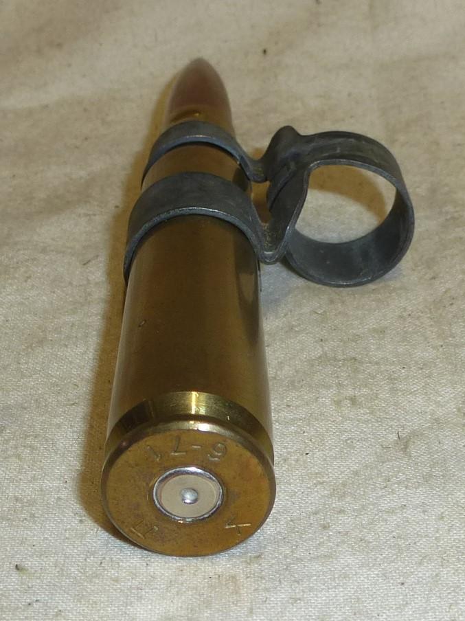 This is a post WWII inert .50cal round In nice condition with original head and link. Fully inert for UK sale only