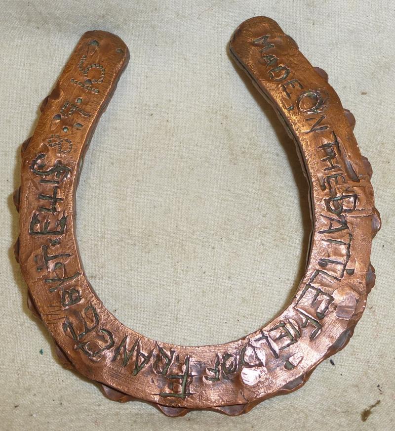 A shell driving band has been used to create this horse shoe it has been made using two pieces with both parts riveted together.