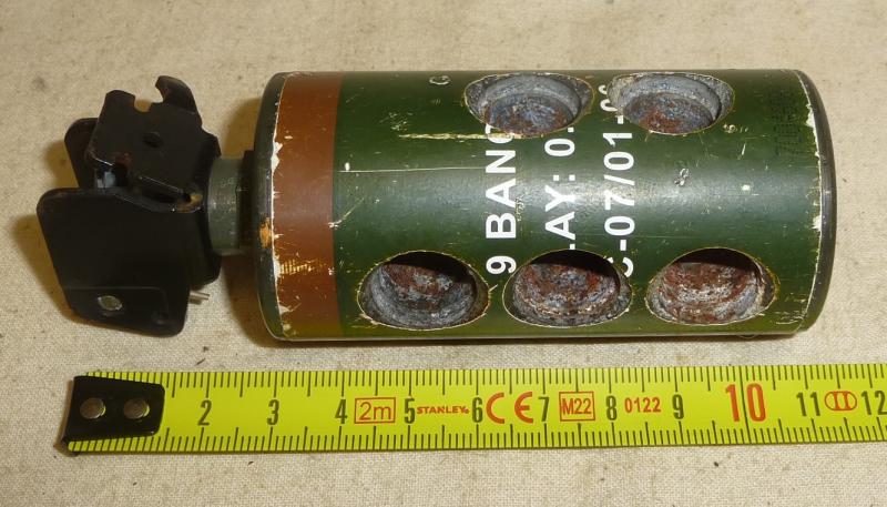 This is a used inert 9 bang inert stun grenade. British issued item that are used in situations to confuse and stun and enemy during operations. Fully inert for UK sale only