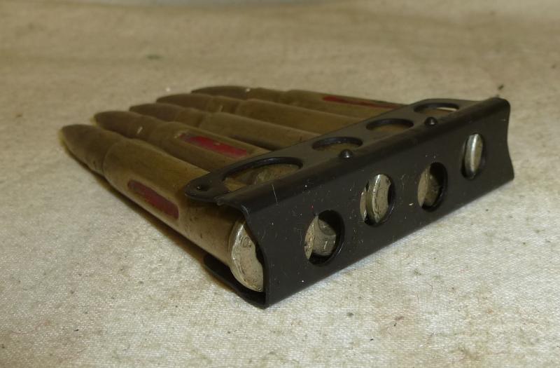 A 5 round clip with genuine WWII period inert training drill rounds All matching marked RL to the base in fair condition for age a nice little set For UK sale only