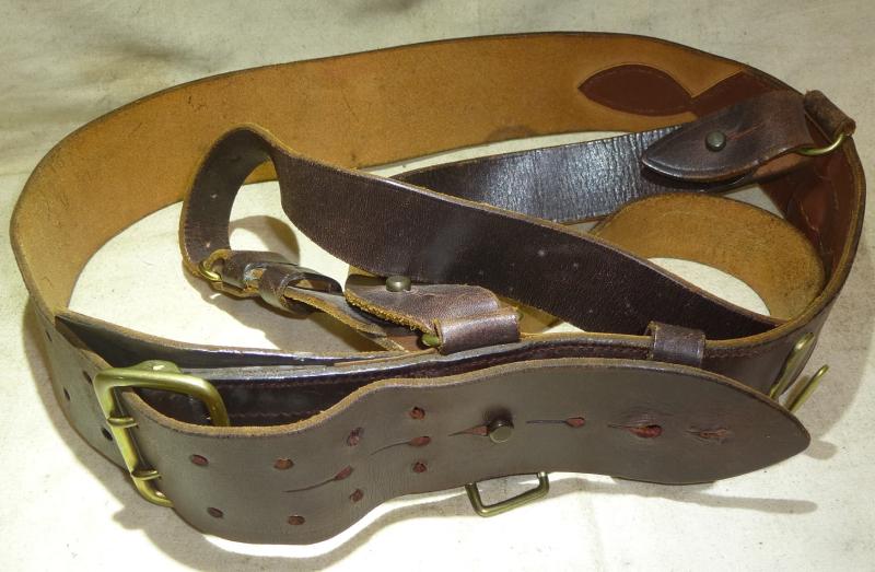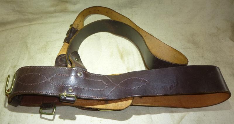 This is a used Sam Browne belt with shoulder strap. The leather is in good supple condition Date unknown. Belt size appears to be 32" - 38" approx