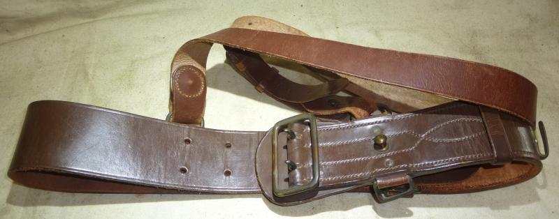 Sam Browne belt with shoulder strap. In good used condition could possibly be WWII period The leather is nice and supple. The belt measures approx 34" - 37"
